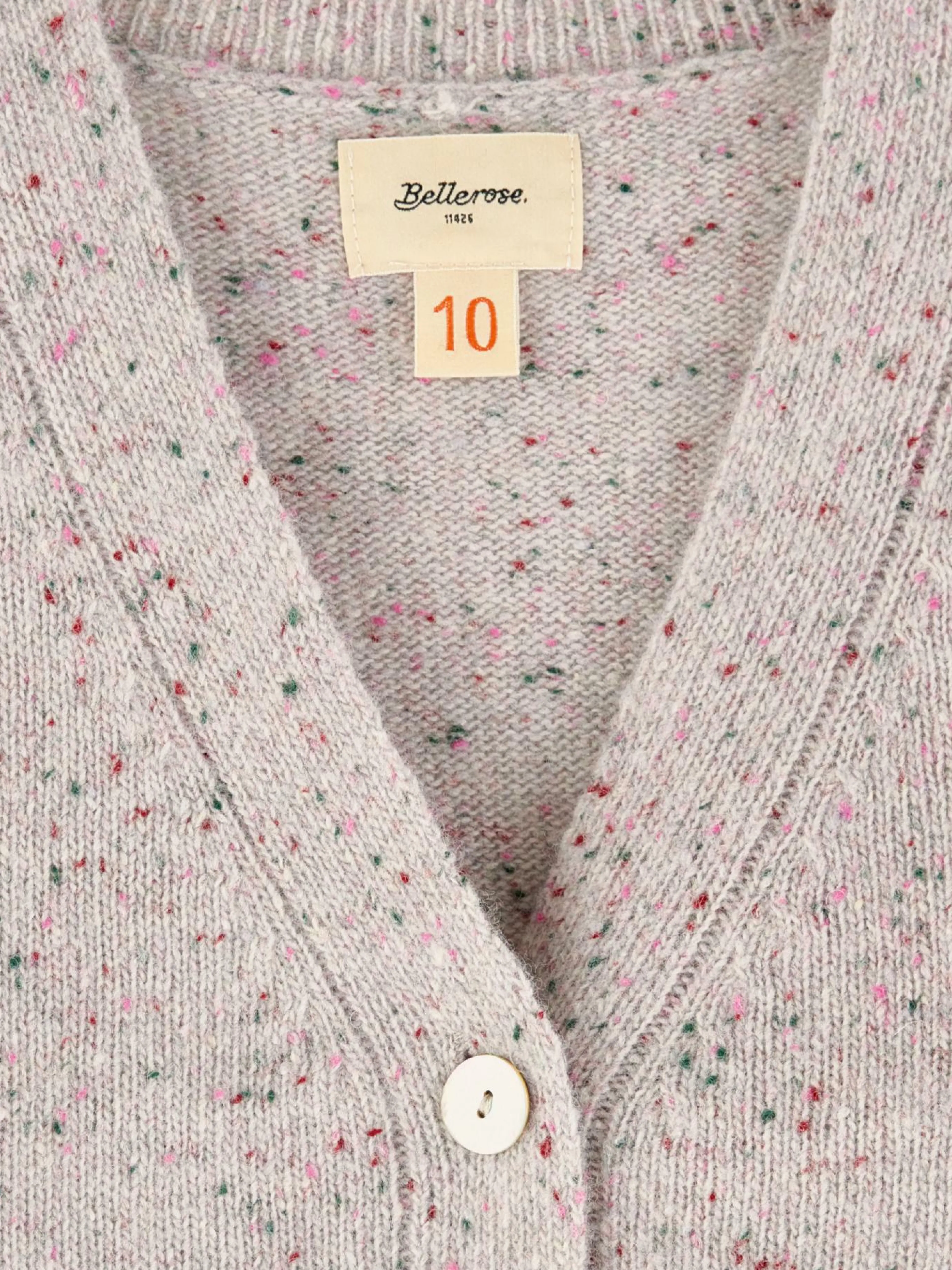 Cardigan court sans manches avec neps multicolores.
