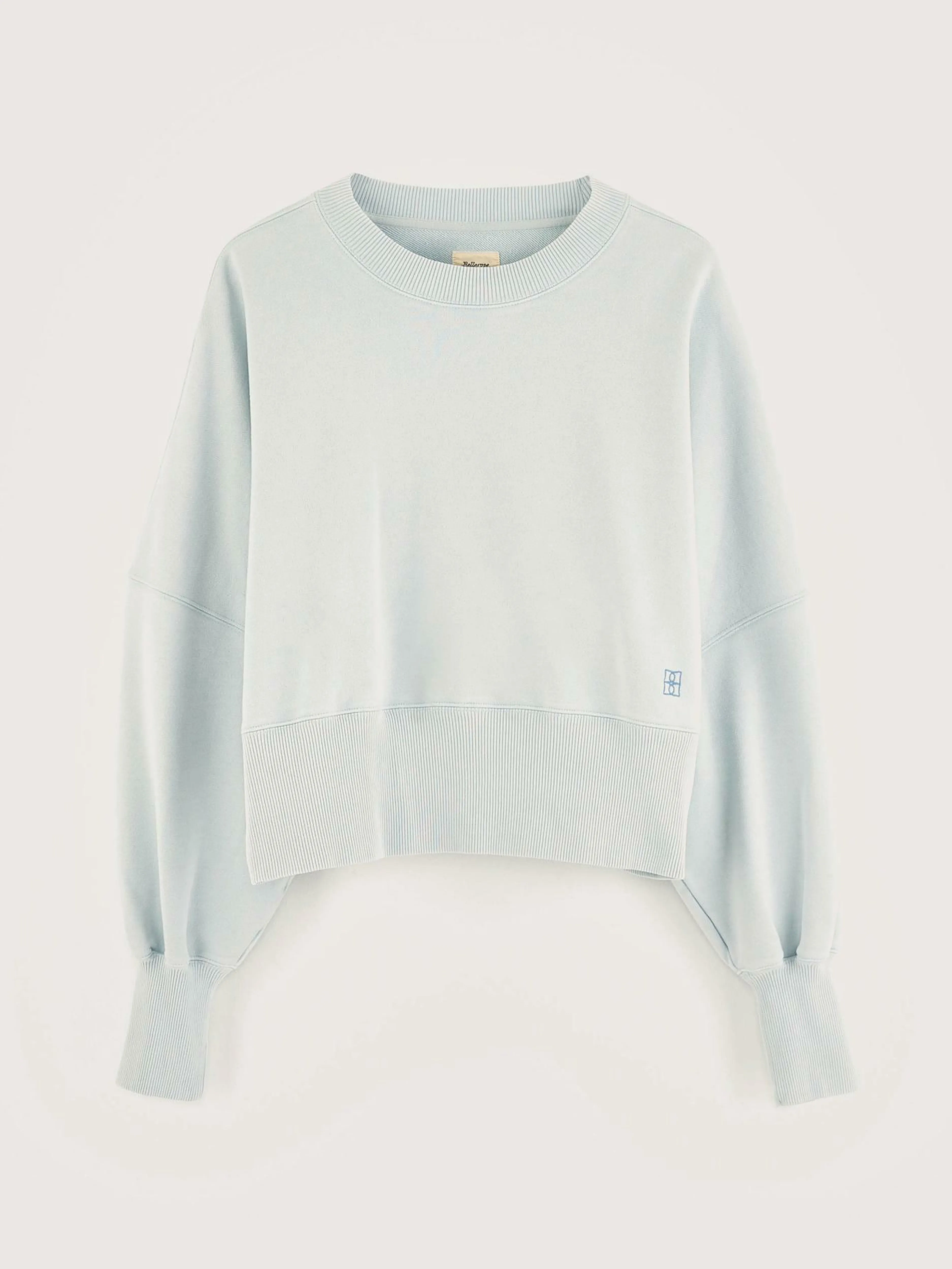 Sweatshirt oversize en jersey de coton biologique bleu clair.Encolure rondeManches ballonLarges bords-côteLéger délav…