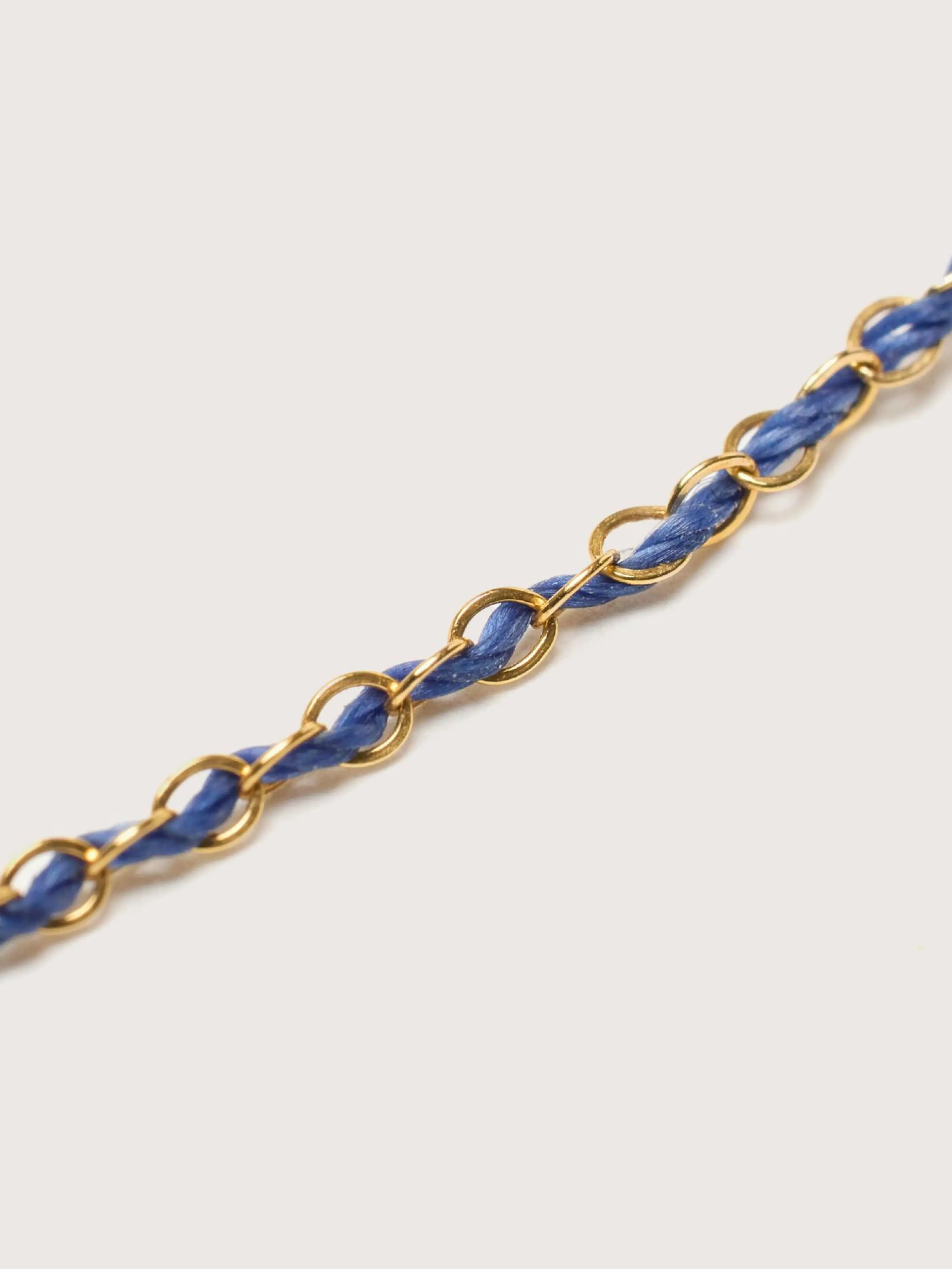 Le collier Maison Mönik Beaute est un délicat tissage de soie et de fils d’or.