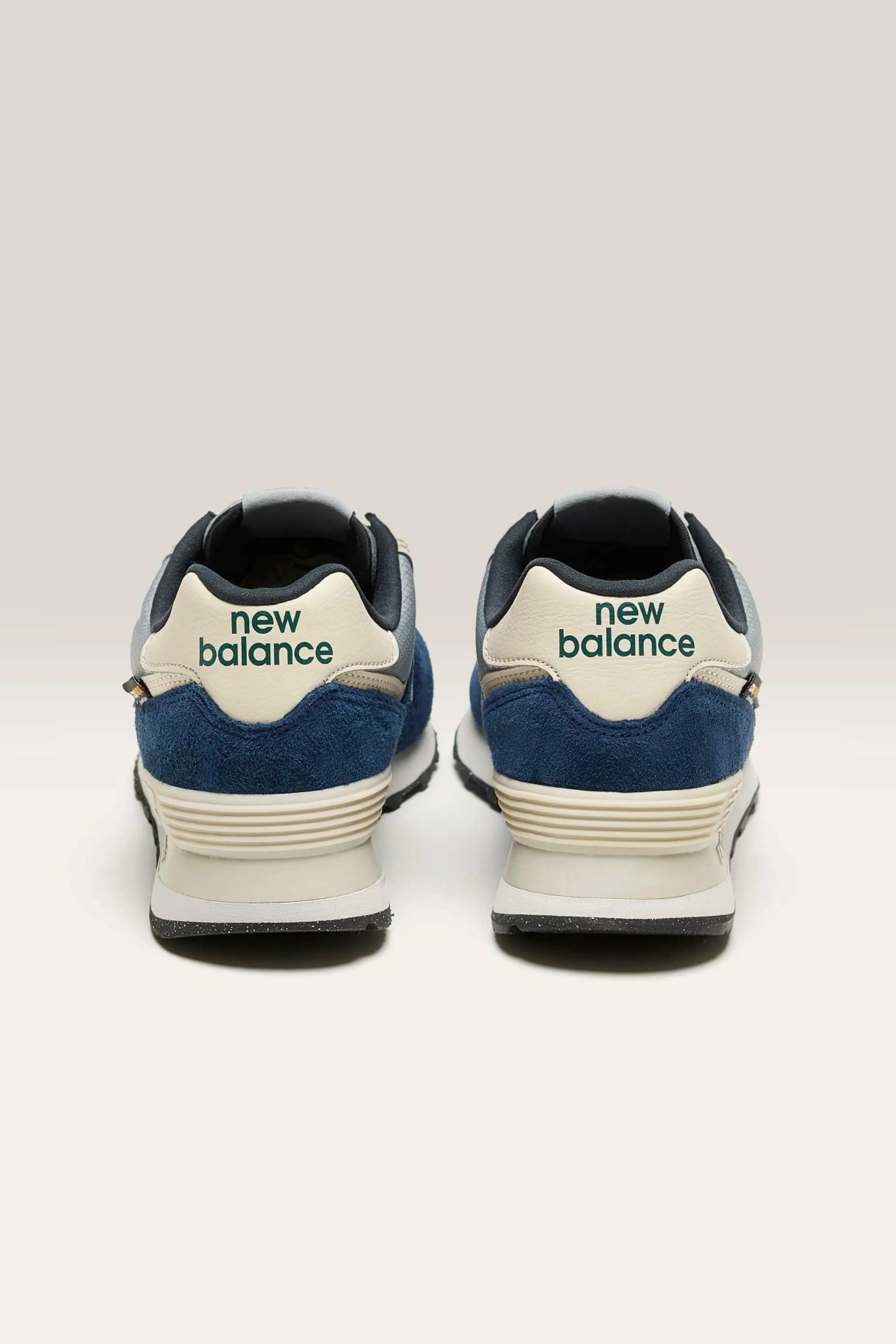 Les sneakers lifestyle New Balance 574 présentent un design hybride route/trail en suède avec un amorti EVA léger.