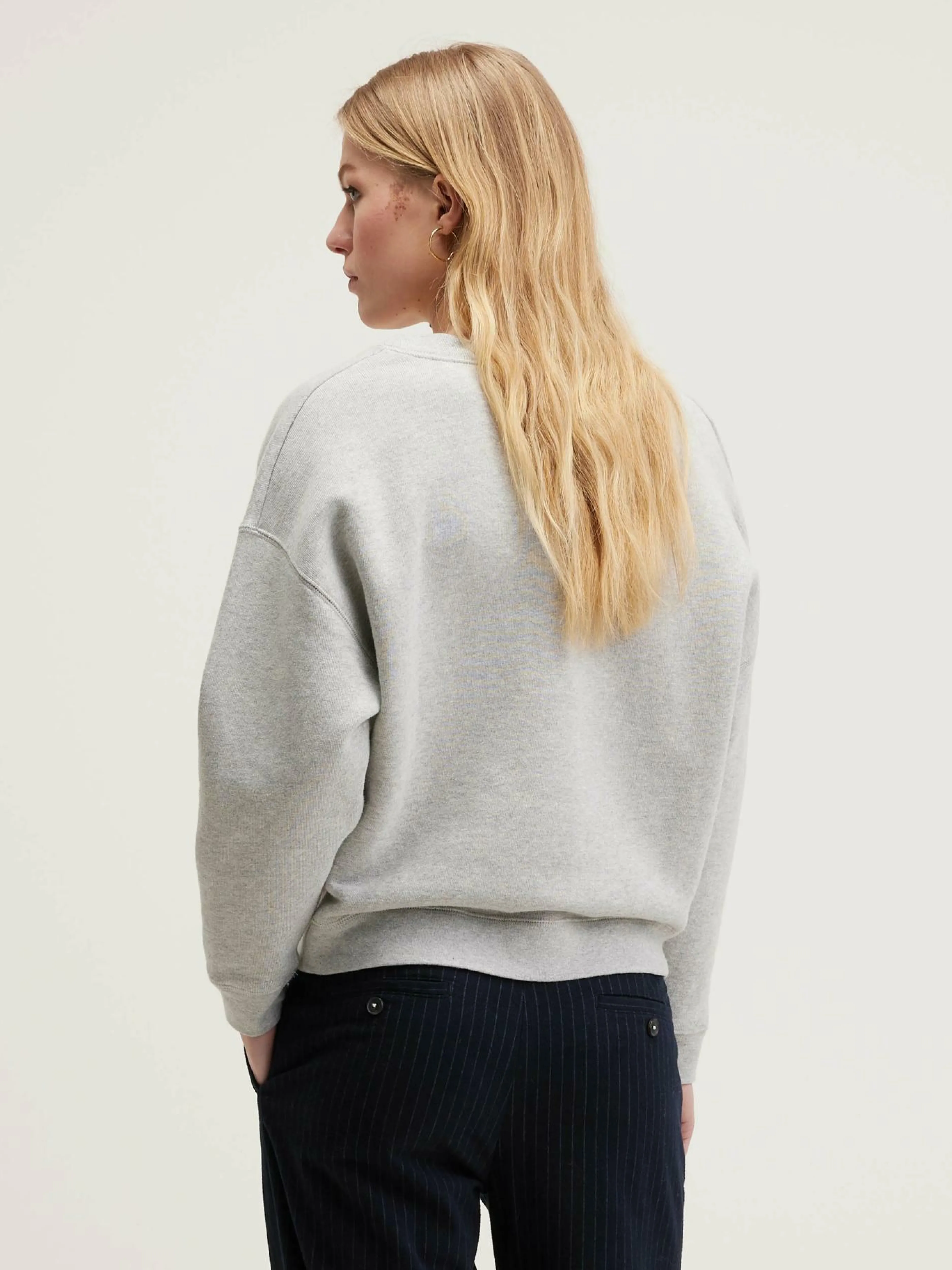 Sweatshirt décontracté gris chiné à col en V en molleton.Coupe décontractéeManches longuesCol VÉpaule tombanteBor…